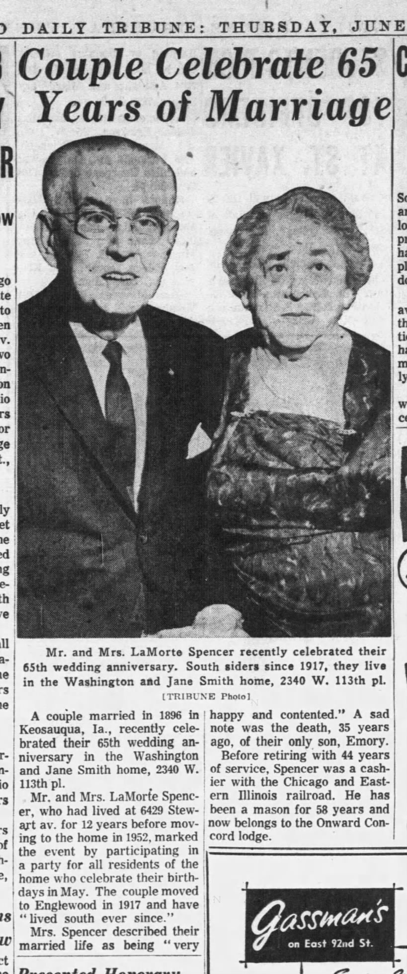 When we find Spencer again he has spent the rest of his life in Chicago, having given up the barber trade entirely in exchange for a lifetime of working as a ticket agent for the railroad.