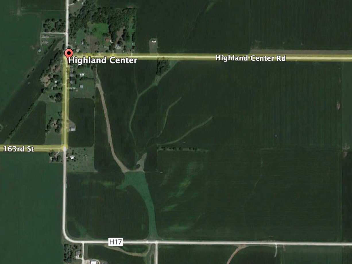 Highland Center today is a crossroads not sleepy but asleep. Despite that, a surprising amount of traffic slips down the gravel of Highland Center road as a sneak between the suburbs that have colonized the farmland.