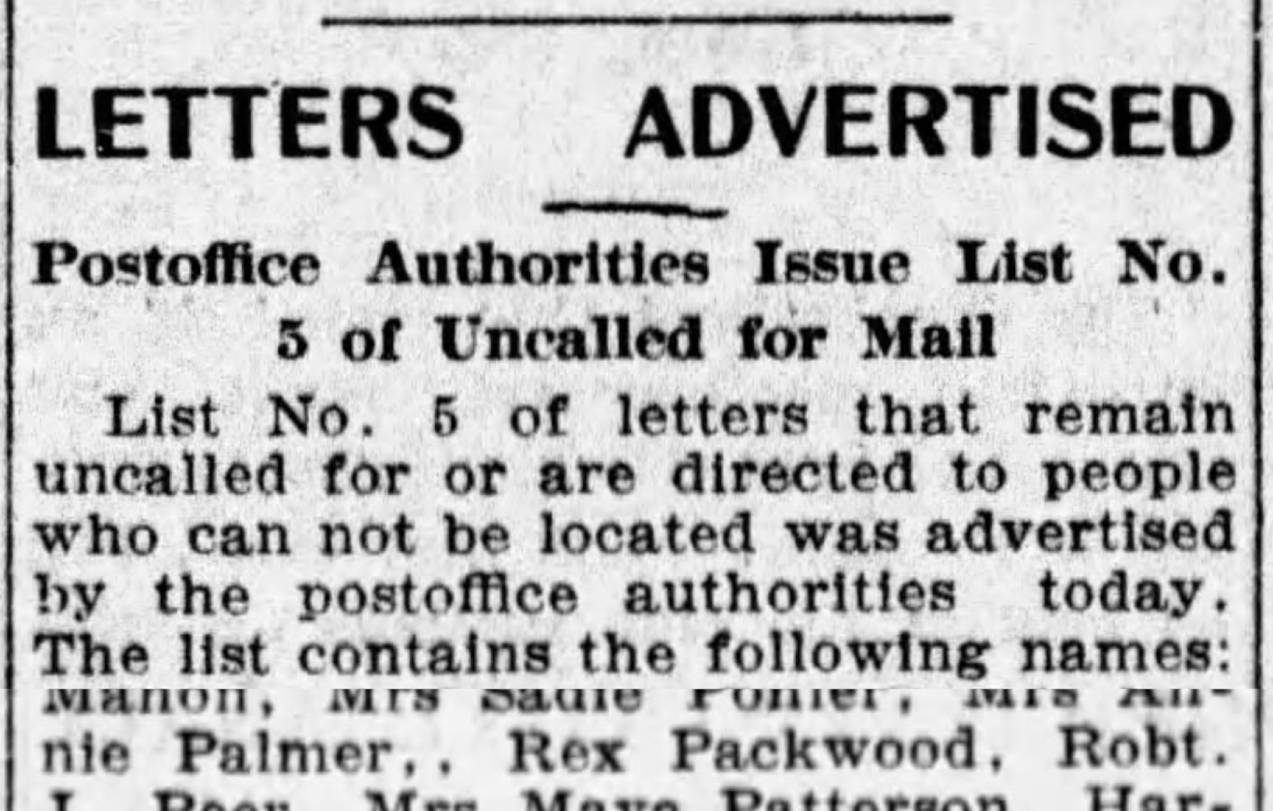In October a listing appears for undelivered mail for Rex in Davenport.