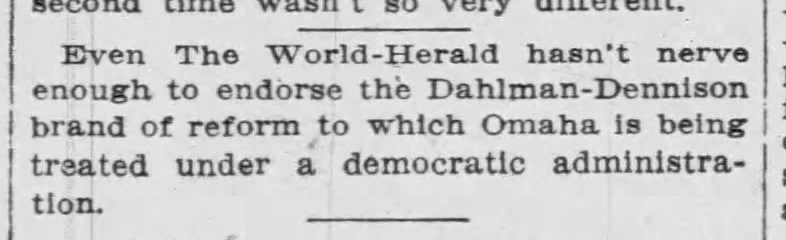 For a few months it’s chaos and unclear who Dennison backs and who will back Dennison. Somehow most of this out in the open. It must have been a time of tense anticipation for the lower order crime lords in Omaha. Sweaty.